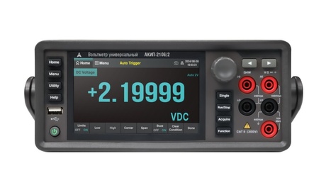 Вольтметр универсальные АКИП-2106/2 предназначен для измерения постоянных напряжений и силы тока, среднеквадратичных истинных (TRMS) значенийпеременных напряжений и силы тока, электрического сопротивления, емкости и температуры. Прибор обеспечивает возможность измерения частоты и периода переменного напряжения. Прибор обеспечивает математическую и логическую обработку результатов измерения по встроенным программам. Прибор обеспечивает возможность работы в составе автоматизированной системы измерения по стыкам USB, LAN и опционально GPIB (в виде внешнего кабеля-адаптера). Функциональные возможности